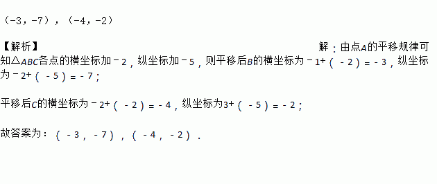 △ABC的三个顶点的坐标分别是A(1,2),B(-1,-2),C(-2,3),将其平移到点A/处,使A与A/(-1,-3)重合,则B、C两点平移后的坐标分别是__________.