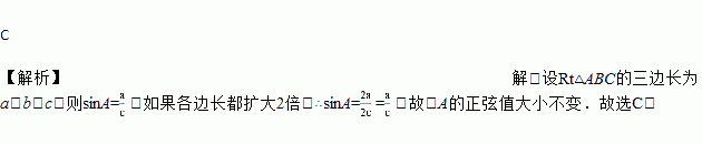 ,各边都扩大2倍,则锐角A的正弦值![]()