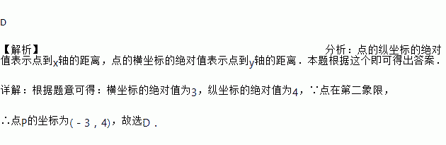 点P在第二象限内,点P到x轴的距离是4,到y轴的距离是3,那么点P的坐标为( )