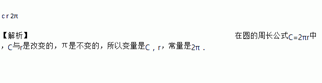 圆周长C与圆的半径r之间的关系为C=2πr,其中变量是________,________ ,常量是________ .