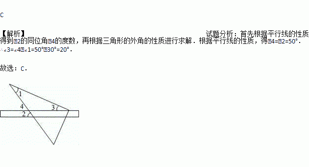 A. 50° B. 30° C. 20° D. 15°