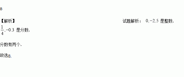 在0,-2,5, ,-0.3中,分数的个数是( )