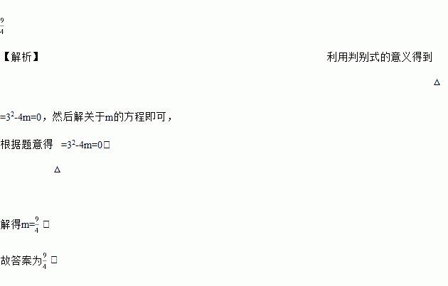 已知关于x的一元二次方程x2+3x+m=0有两个相等的实数根,则m=_____.