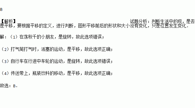 (1)在荡秋千的小朋友; (2)打气筒打气时,活塞的运动;
