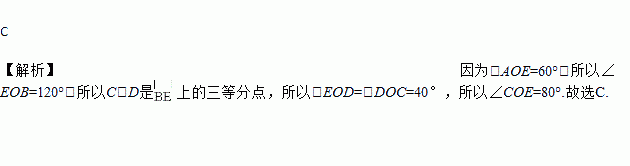 如图,已知:AB是⊙O的直径,C、D是上的三等分点,∠AOE=60°,∠COE是( )