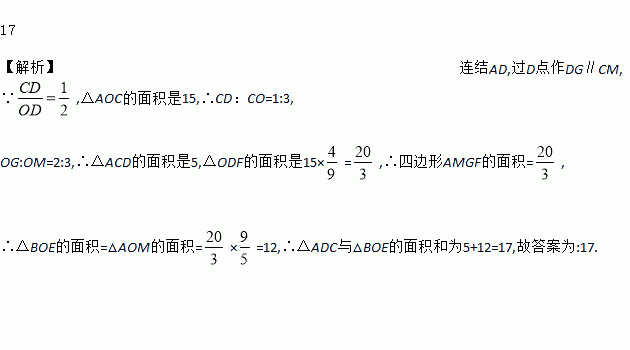 ,连接OA,OE,如果△AOC的面积是15,则△ADC与△BOE的面积和为_____.