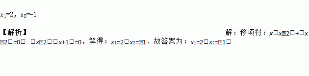 x1=2,x2=-1 【解析】【解析】 移项得:x(x﹣2)+(x﹣2)=0,∴(x﹣2)(x+1)=0,解得:x1=2,x2=﹣1.故答案为:x1=2,x2=﹣1.