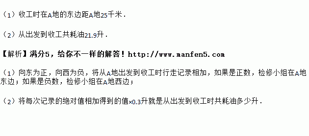 (2)若每千米耗油0.3升,问从A地出发到收工时,共耗油多少升?