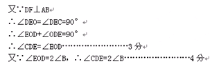 ∴∠CDE+∠ODE=90°……………………2分![]()