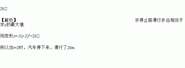 公路上行驶的汽车急刹车时的行驶路程s(m)与时间t(s)的函数关系式为s=20t﹣5t2,当遇到紧急情况时,司机急刹车,但由于惯性汽车要滑行_____m才能停下来.