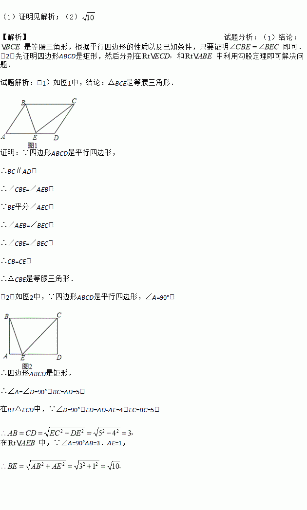 (2)如图2,若∠A=90°,BC=5,AE=1,求线段BE的长.