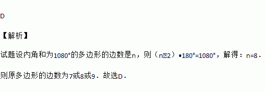 一个多边形切去一个角后,形成的另一个多边形的内角和为1080°,那么原多边形的边数为( )
