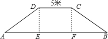 分析:分别过D、C作梯形的高DE、CF,则DE=CF=3m,EF=DC=5m,由坡面AD的坡度为1﹕2,根据坡度的概念得到DE:AE=1:2,