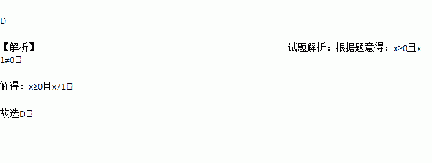 A. x≥0 B. x≠1 C. x>0 D. x≥0且x≠1