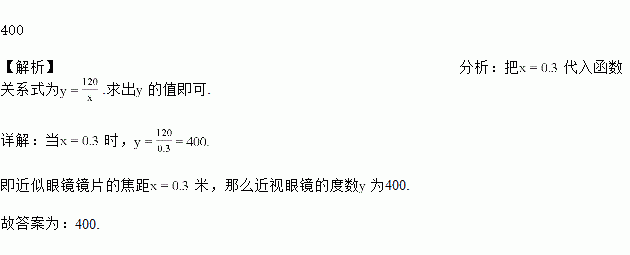 近视眼镜的度数(度)与镜片焦距(米)呈反比例,其函数关系式为.如果近似眼镜镜片的焦距米,那么近视眼镜的度数为_____.