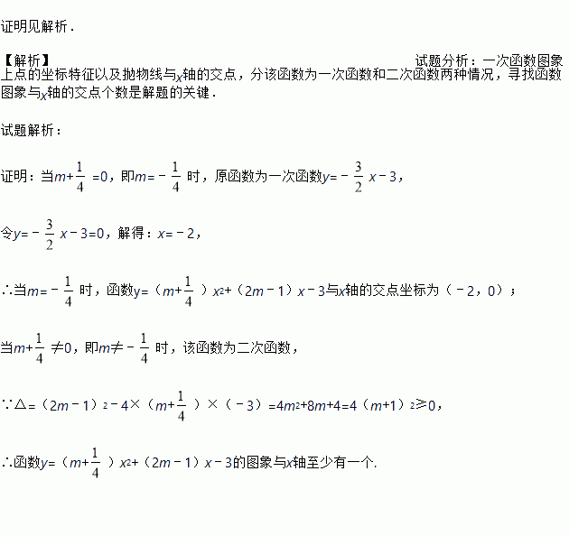 已知函数y=(m+)x2+(2m﹣1)x﹣3.求证:不论m为何值,该函数图象与x轴必有交点.