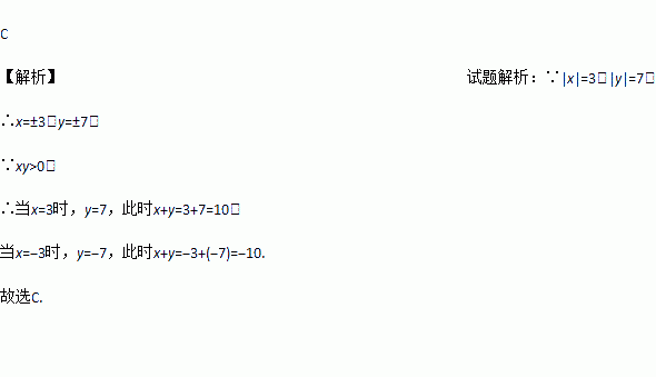 已知|x|=3,|y|=7,且xy>0,则x+y的值等于( )