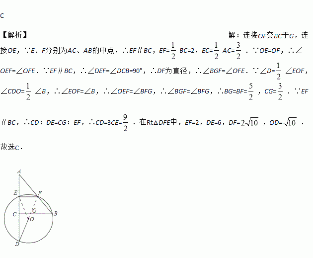 如图,△ABC中,AC=3,BC=4,∠ACB=90°,E、F分别为AC、AB的中点,过E、F两点作⊙O,延长AC交⊙O于D.若∠CDO=