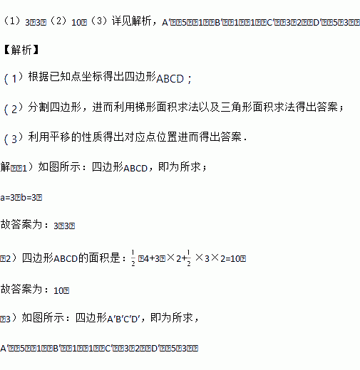 (3)把四边形ABCD向左平移6个单位,再向下平移1个单位得到四边形A'B'C'D',在图中画出四边形A'B'C'D',并写出A'B'C'D'的坐标.