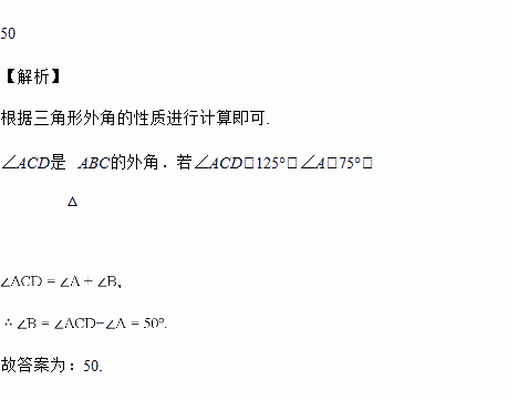 如图,∠ACD是△ABC的外角.若∠ACD=125°,∠A=75°,则∠B=__________°.