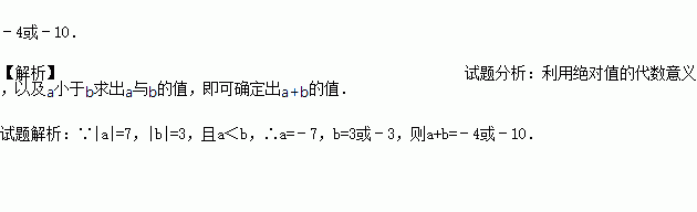 已知|a|=7,|b|=3,且a<b,求a+b的值.