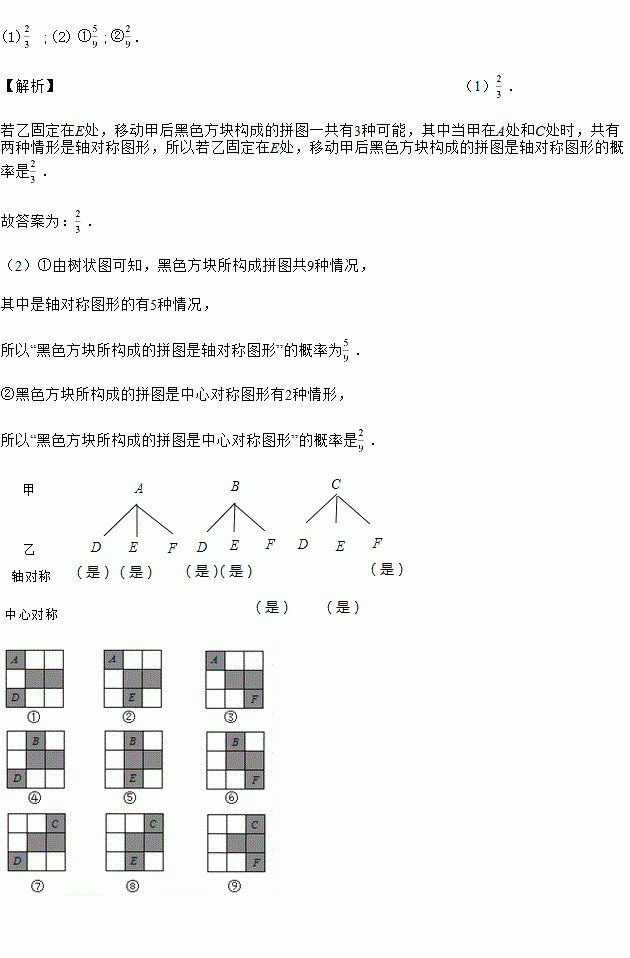 (1)若乙固定在E处,移动甲后黑色方块构成的拼图是轴对称图形的概率是________.