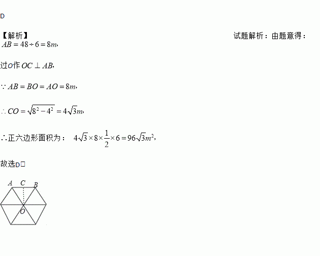 用48m长的篱笆在空地上围成一个正六边形的绿化场地,那么这个场地的面积为( )