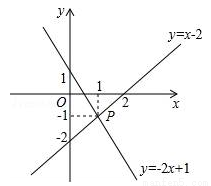 查看答案如图,已知函数y=x-2和y=-2x+1的图象交于点P,根据图象可得方程组