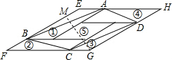如图,①②③④⑤五个平行四边形拼成一个含30°内角的菱形EFGH(不重叠无缝隙).若①②③④四个平行四边形面积的和为14cm2,四边形ABCD面积是11cm2,则①②③④四个平行四边形周长的总和为________.