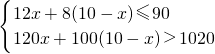分析:设购买A型号设备x台,则购买B型号设备(10-x)台,根据“购买设备的资金不高于90万元,每月需要处理的污水量大于1020吨”列出不等式组,然后解出x的值即可.