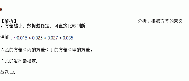 甲、乙、丙、丁四位选手各10次射击成绩的方差如下表:
