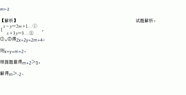关于x、y的二元一次方程组的解满足x +y>0,则m的取值范围是_____.