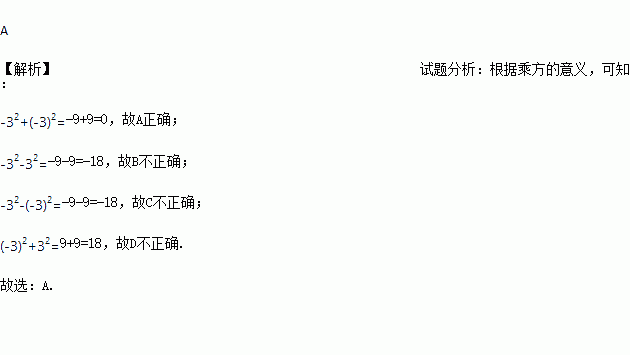 C. -32-(-3)2=0 D. (-3)2+32=0