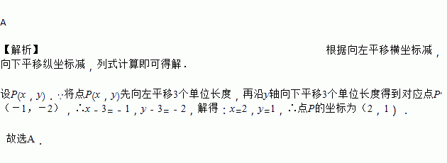 在平面直角坐标系中,把点P先沿x轴向左平移3个单位长度,再沿y轴向下平移3个单位长度得到对应点P′(-1,-2),则点P的坐标是( ).