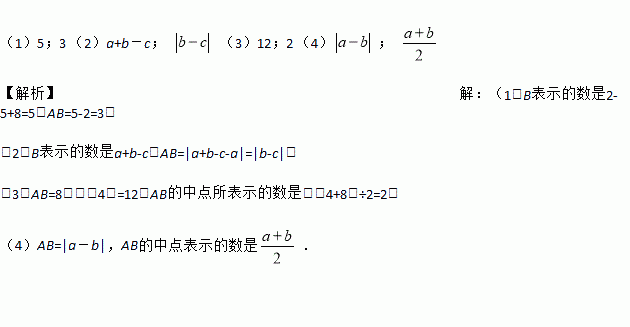(3)如果点A表示数-4 ,点B表示的数是8,那么A、B两点间的距离是 ,AB的中点所表示的数是 ;