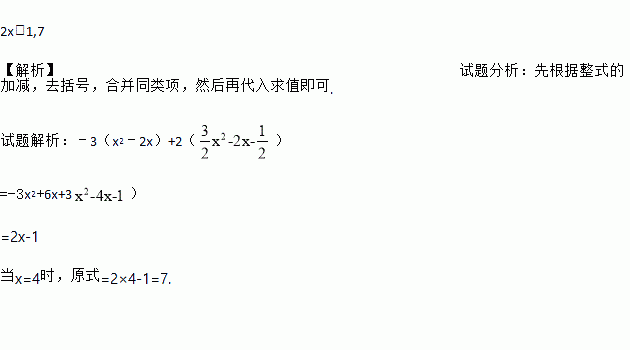 先化简,再求值:﹣3(x2﹣2x)+2(),其中x=4