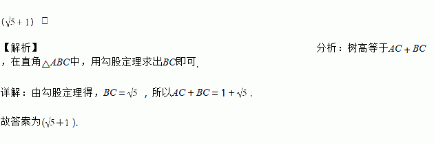 如图,一场暴雨过后,垂直于地面的一棵树在距地面1米的点C处折断,树尖B恰好碰到地面,经测量AB=2米,则树高为______米.