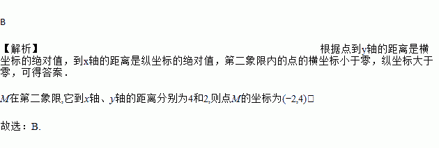 点M在第二象限,它到x轴、y轴的距离分别为4和2,则点M的坐标为( )