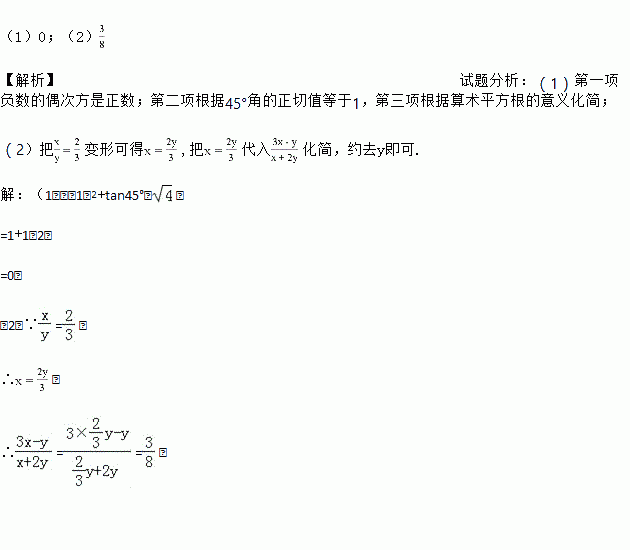 计算:(1)(﹣1)2+tan45°﹣;(2)已知,求的值.