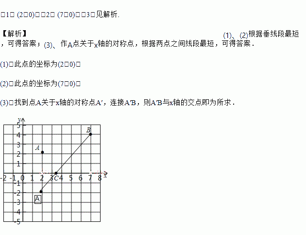 在如图所示的平面直角坐标系中,已知A,B两村庄的坐标分别为(2,2),(7,4),一辆汽车从原点O出发,在x轴上行驶.