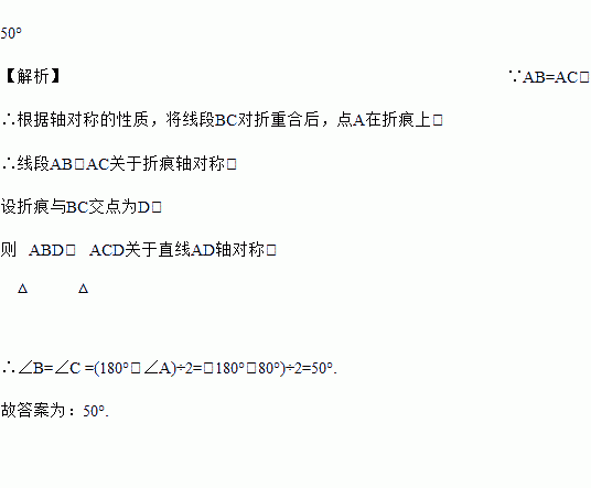 在△ABC中,AB =AC,∠A=80°,则∠B=__________.