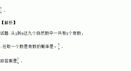 从1,2,3,4,5,6,7,8,9这九个自然数中,任取一个数是奇数的概率是 .