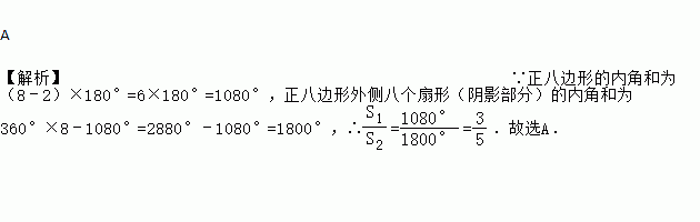 如图,把八个等圆按相邻两两外切摆放,其圆心连线构成一个正八边形,设正八边形内侧八个扇形(无阴影部分)面积之和为S1,正八边形外侧八个扇形(有阴影部分)面积之和为S2,则