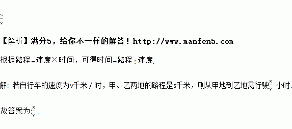 甲地到乙地的路程为s千米,小康骑自行车从甲地到乙地的平均速度为v千米/时,则他从甲地到乙地所用的时间为_____小时.