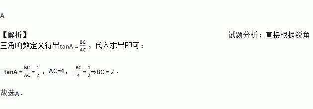 如图,已知Rt△ABC中,∠C=90°,AC=4,tanA=,则BC的长是( )
