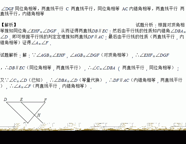 如图,点E在直线DF上,点B在直线AC上,若∠AGB=∠EHF,∠C=∠D.