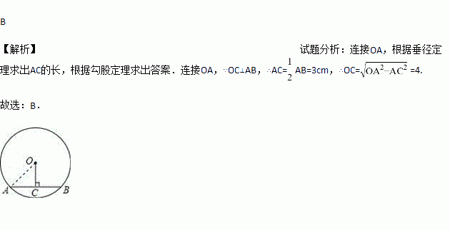 如图,在半径为5cm的⊙O中,弦AB=6cm,OC⊥AB于点C,则OC=( )