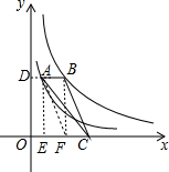 解答 解:作AE⊥x轴于E,BF⊥x轴于F,延长BA交y轴于点D,如图,![]()