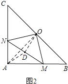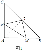 【解答】解:(1)△OMN 是等腰直角三角形. 理由:连接 OA,如图 1,