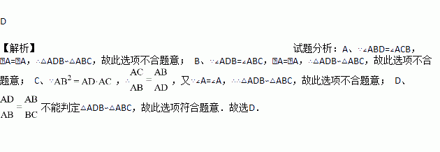 如图,下列条件不能判定△ADB∽△ABC的是( )